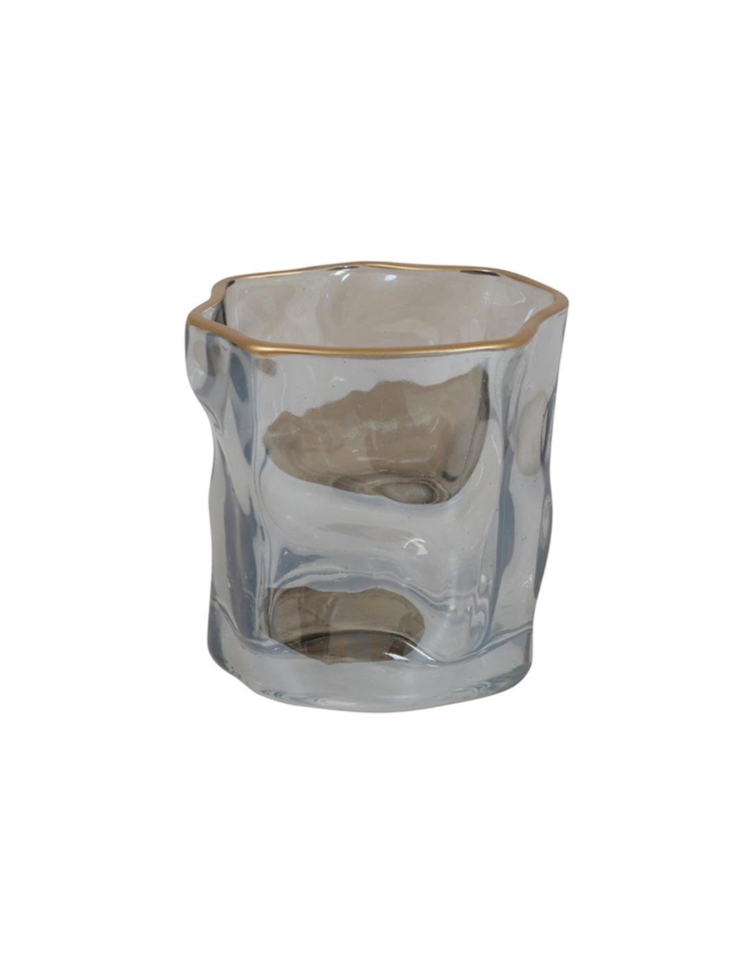 Κηροπήγιο γυάλινο Rim gold Γκρί 7,7 X 7,7 cm.